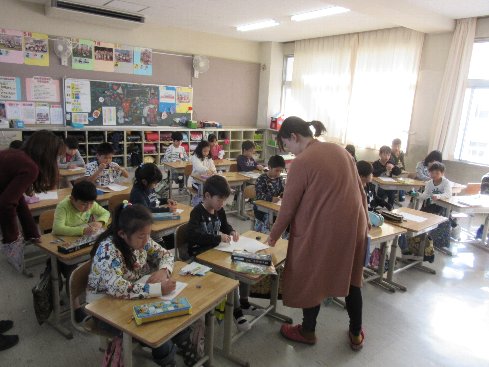 2時間目は算数の授業でした。九九の小テストの後、九九カードを使って、グループで暗唱をしました。いろいろな方法で、九九を繰り返し覚えることは2年生にとってとても大切です。
