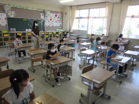 1時間目は生活科の授業でした。初めての授業で、「生活科ってどんな勉強をするんだろう」と、これからの学習について確認していきました。