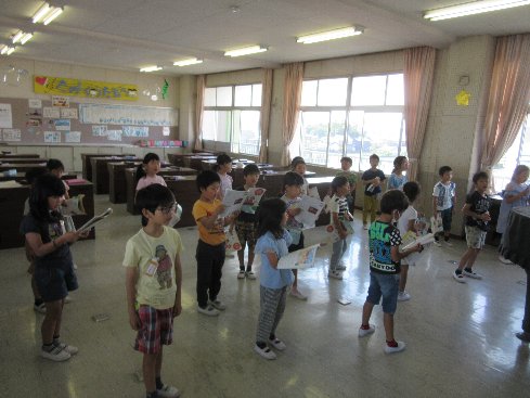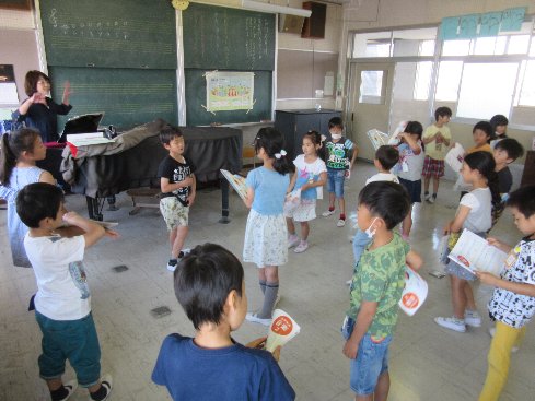 1時間目は音楽の授業でした。「はしの上で」を合唱しました。