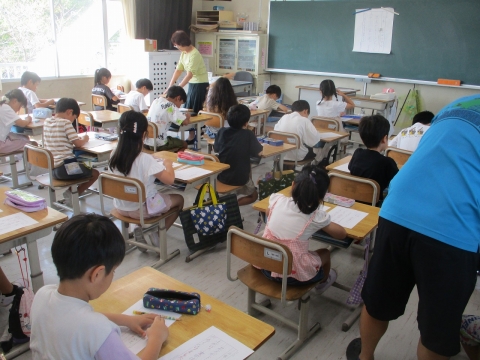 書写コンクールに向けて、練習に励んでいました。お手本を見ながら、