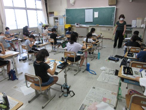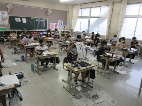 3時間目は書写の授業でした。とめ、はねの練習をしました。