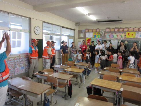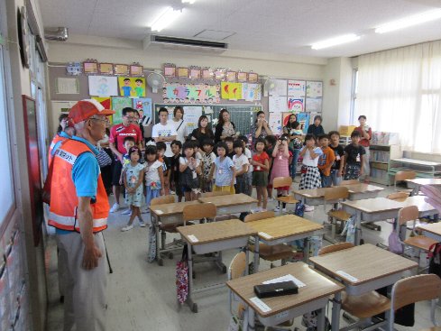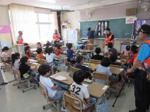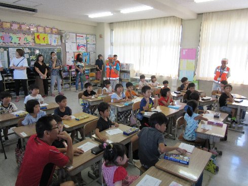 2時間目は防災教室でした。はじめに紙芝居「まっくらぐらぐら」を見せていただいてから、非常時持ち出し品について教えていただきました。