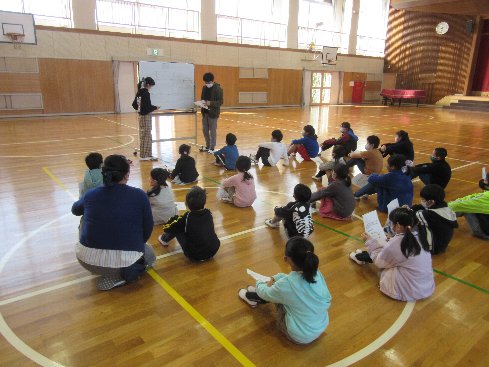 業前は、なかま種目の打ち合わせを行いました。6年生のリーダーを中心に種目内容を説明しました。