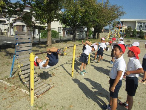 1時間目は体育の授業でした。鉄棒の勉強をしました。