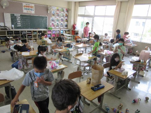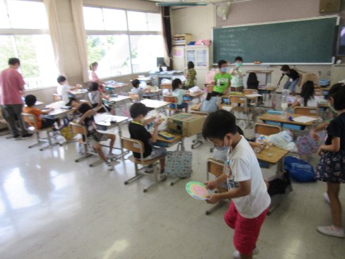 3時間目は生活科の授業でした。おもちゃ作りも佳境に入り、完成した子もぼちぼち出てきました。