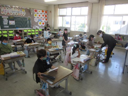 1時間目は国語の授業でした。「はなのみち」を実際に演じてどんな様子なのか考えました。