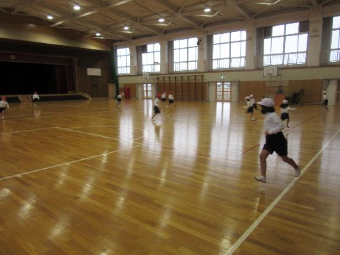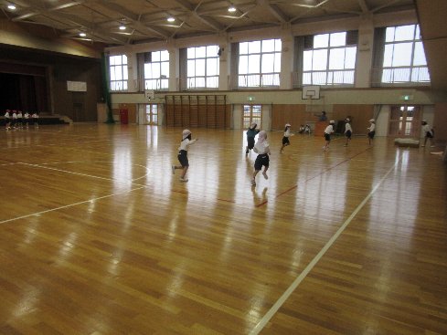 3時間目は体育の授業でした。跳び箱をはじめるまえに、ウォーミングアップでおにごっこをしました。