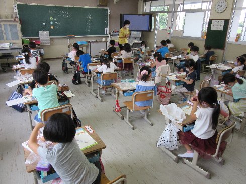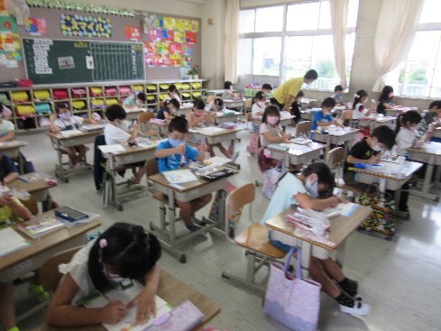 1時間目は生活科の授業でした。アサガオの花を使ってすてきないろみずをつくって観察しました。