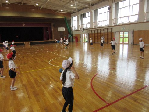 1時間目は体育の授業でした。ドッヂボール投げを行いました。