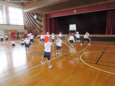 2時間目は体育の授業でした。大縄を跳べるようになるために、まずは波で、跳ぶ練習をしました。がんばってください。
