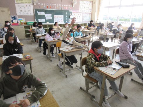 4時間目は外国語活動の時間でした。お気に入りの場所を紹介する表現を練習しました。