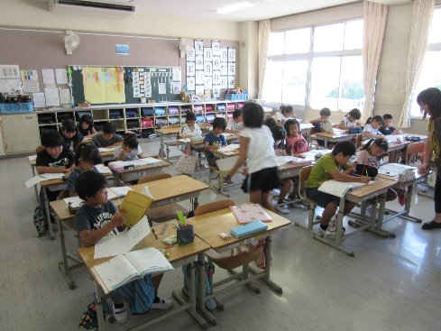 1時間目は算数の授業でした。今までの復習をしようということで、章末問題に取り組みました。