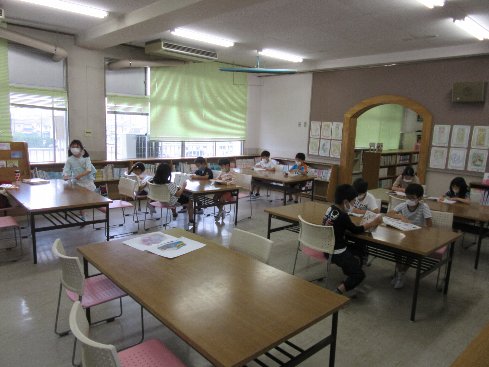 昨日今日と雨で外遊びができません。今週から図書室の使用が再開となって、2時間目の放課に図書室を利用する姿が見られました。静かに読書する姿はとても素敵ですね。