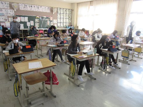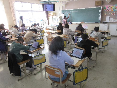 1時間目は算数の授業でした。四角形の拡大図と縮図について考えました。