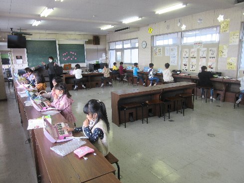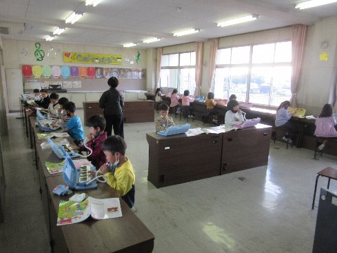 1時間目は音楽の授業でした。「ドレミであいさつ」を鍵盤ハーモニカで演奏しました。
