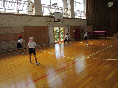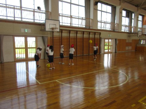 3時間目は体育の授業でした。秋竹ストレッチでアップした後、ソフトバレーボールのゲームをしました。