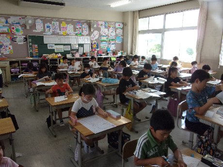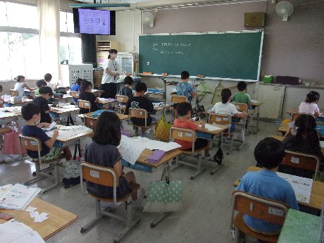 1時間目は算数の授業でした。わくわく算数ひろばで、ぶるっとまわる線路をどうやって作るか考えました。