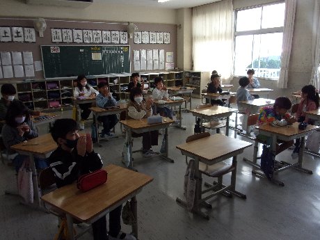 1時間目は学活でした。1時間目は理科の「太陽の観察」をセットしてからスピーチの発表をしました。