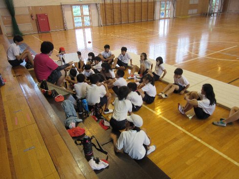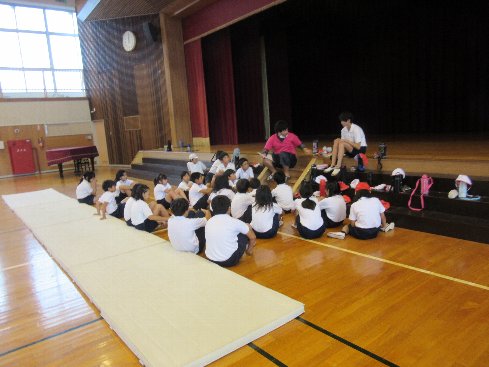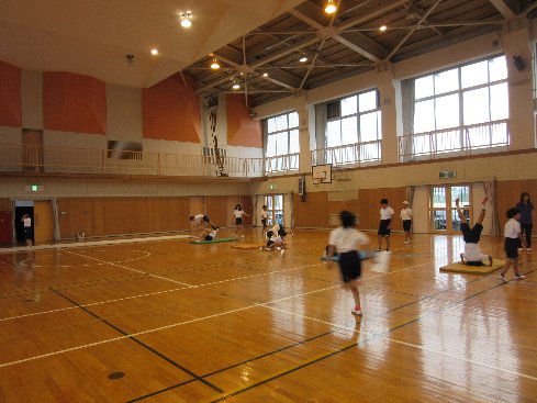 雨で水泳ができませんでした。体育館でマット運動をしました。今日は、これまでのテストです。まず練習をしてからテストをしました。