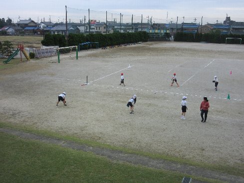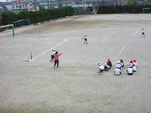 3時間目は体育の授業でした。ティーボールを行いました。