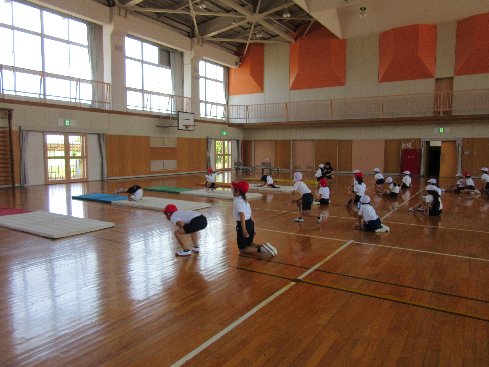 4時間目は体育の授業でした。マット運動で、後転の練習をしました。
