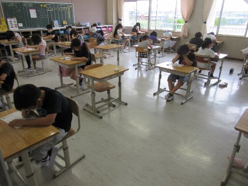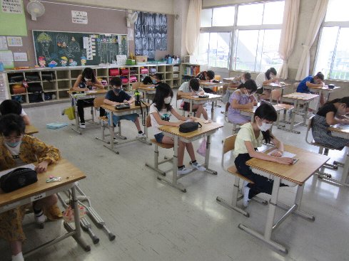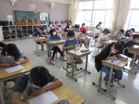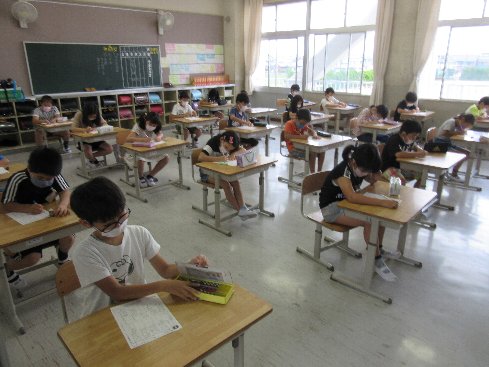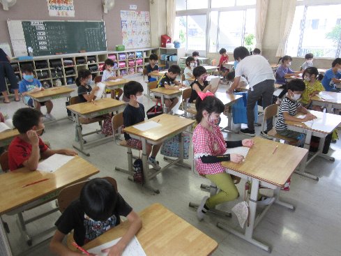 登校してきてから業前の時間を迎えるまでの動きもずいぶん慣れてきました。スムーズに手洗いをしたり、健康チェックカードを提出したり、習慣化できてきたようです。業前の活動では、小テストを行う学年もありました。有効に活用できていると思います。