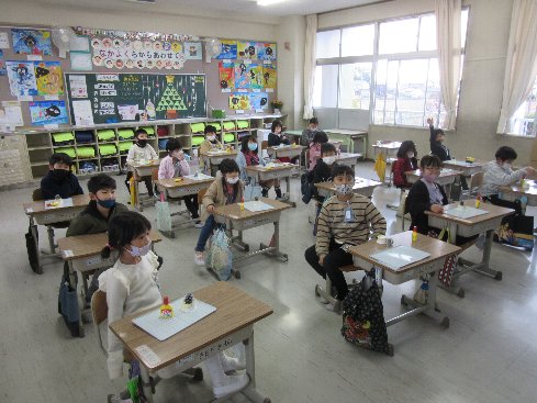 2時間目は生活科の授業でした。クリスマスツリーづくりに挑戦しました。