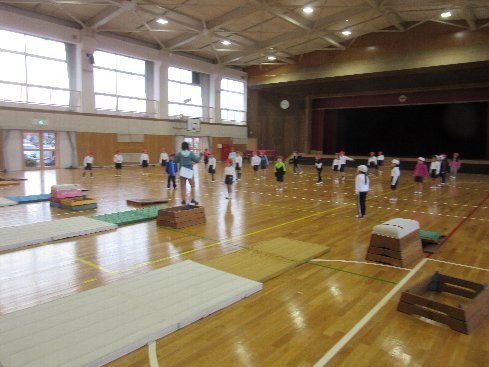 1時間目は体育の授業でした。跳び箱で開脚跳びの高さを高くして練習しました。