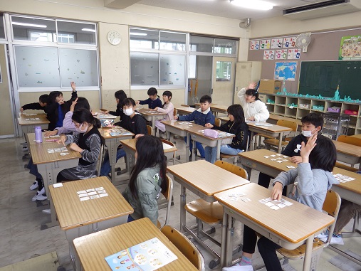 4時間目は外国語活動の時間でした。各教室の名前を英語でどのように表現するか学習しました。