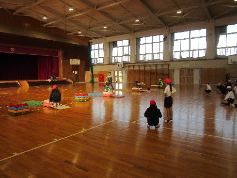 1時間目は体育の授業でした。台上前転をしました。