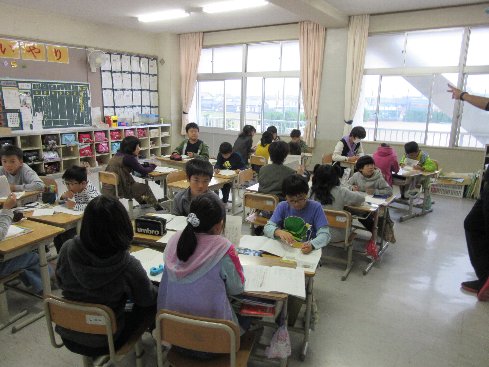 5月7日(月)4時間目は国語の授業でした。空書きをした後、漢字ドリルを使って、新出漢字を確認しながら学習を進めていきました。