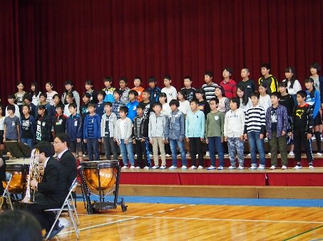 今日は終日、北中学校へ出かけて、小中交流会に参加しました。授業の様子を見せてもらったあと、弁当の日の取り組みで、北中生と宝小の人たちと一緒にお弁当を食べました。そのあと、演奏会で、オーケストラの演奏を聴いたり、自分たちの合唱を発表したりしました。こうした取り組みを通して、中学校生活へのハードルが下がるといいですね。