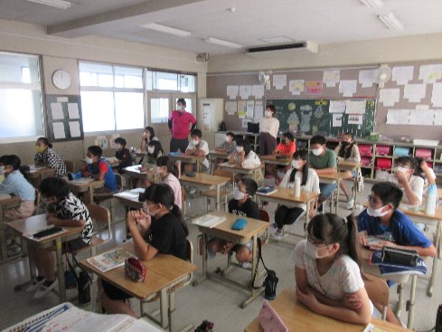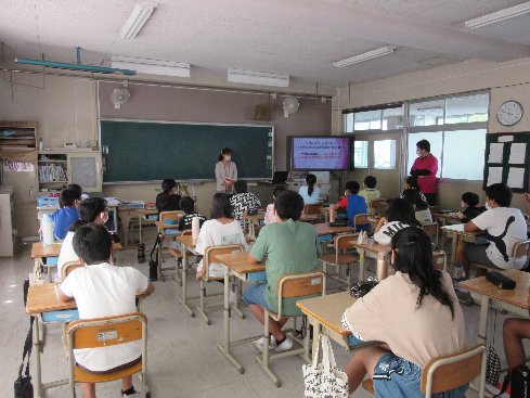 4時間目は栄養教諭の兼子先生に来ていただいて、弁当の日の意義や、どんな点に注意してお弁当を作ったらよいかについて教えていただきました。