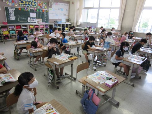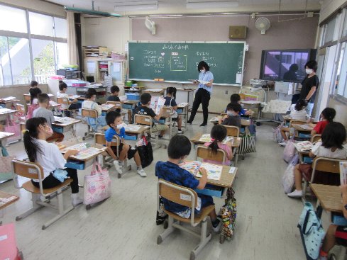 1時間目は図画工作の授業でした。「みてみて あのね」で、クレヨンでの表現について学習しました。