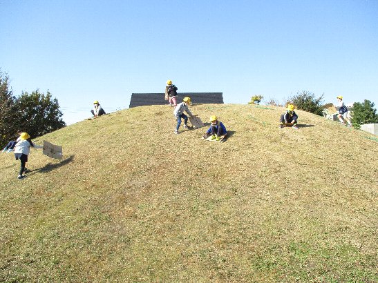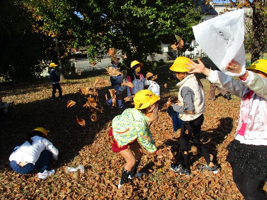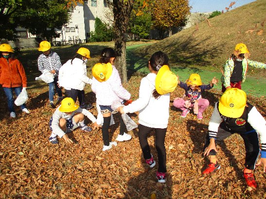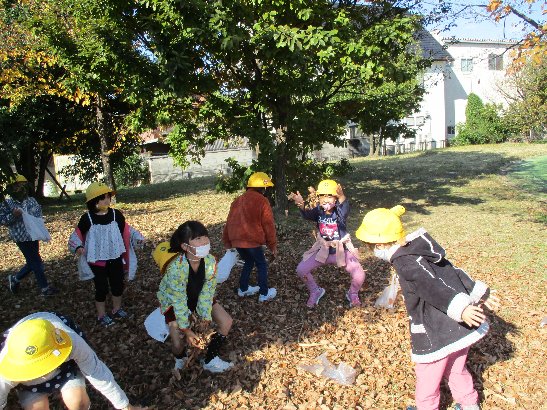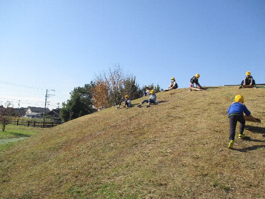 午前中、生活科の「秋みつけ」に七宝焼きアートビレッジへ出かけました。落ち葉や木の実を拾ったり、斜面のそり滑りをしたり、とても楽しく過ごしました。