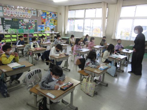5時間目は算数の授業でした。はじめに、20までの足し算の4分チャレンジをしました。