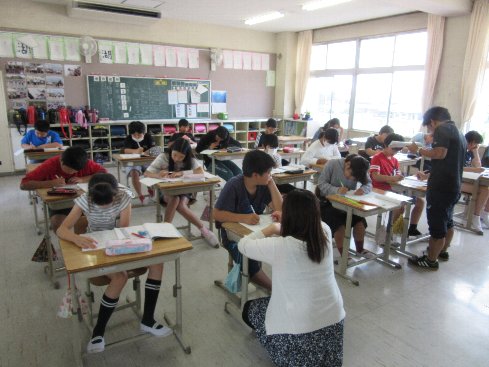 1時間目は算数の授業でした。「計算の途中で、約分をする」場合の計算の仕方を考えました