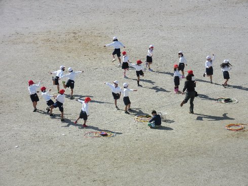 3時間目は体育の授業でした。フリスビーの的入れをしました。