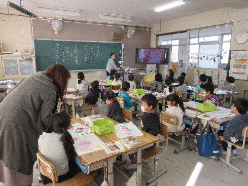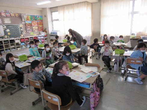 2時間目は初めての英語の授業でした。英語教室でALTの先生と楽しく英語の勉強をしました。