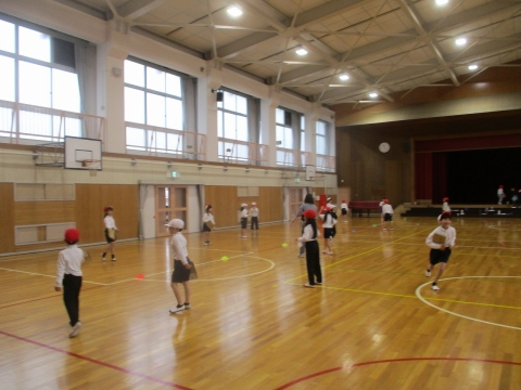 テニピンに取り組んでいました。ボールを手に着けたラケットでボールを上手に操作して、ラリーを続けていました。