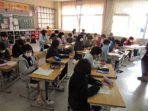6月1日(金)担任の先生が陸上競技会の役員で出張のため、4年生は1日中テストでした。よく頑張りました。