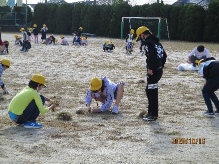 前期終業式のあとの時間を使って、児童会が草取り集会を行いました。今年度は、新型コロナウイルス感染症予防のため、なかなか集会が行えませんでした。前期児童会役員の活躍の場面が少なかったですが、最後の最後に貴重な集会の場面が持てて何よりでした。子どもたちは一生懸命草取りに取り組んでくれました。