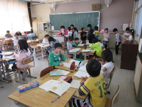 5月30日(水)3時間目は算数の授業でした。章末問題に取り組みました。早くできた子が「小さい先生」になって、理解がまだの子のお手伝いをしていました。