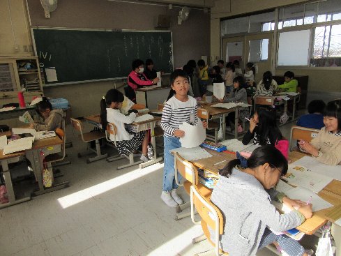 3時間目は国語の授業でした。お話作りに取り組んできて、今日は「おわり」を考えました。