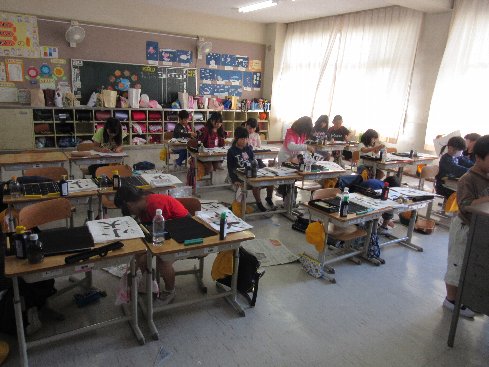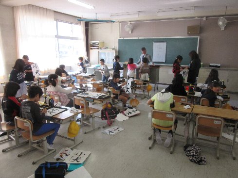 4月16日(月)2時間目は書写の授業でした。初めての毛筆です。硯の使い方から始まって筆のおろし方、片付けのしかたなど、することすべてが初めての経験です。しっかり覚えてスムーズにできるようにしましょう。