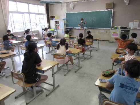 1時間目は学活でした。お楽しみ会で宝探しをしました。