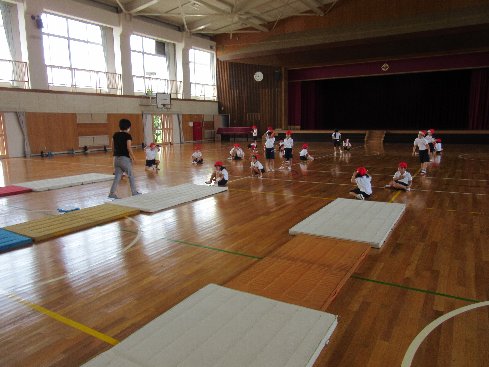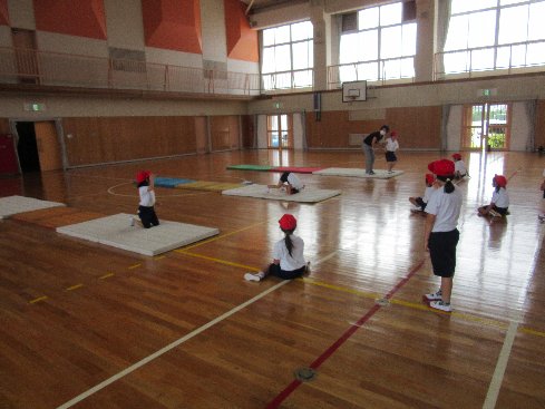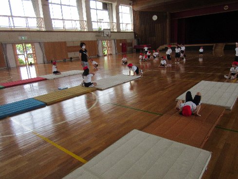 1時間目は体育の授業でした。今回は後転の練習を行いました。