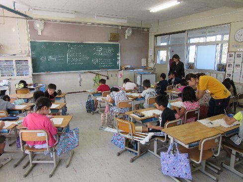 1時間目は算数の授業でした。「ふえたりへったり」のけいさんのしかたについて考えました。