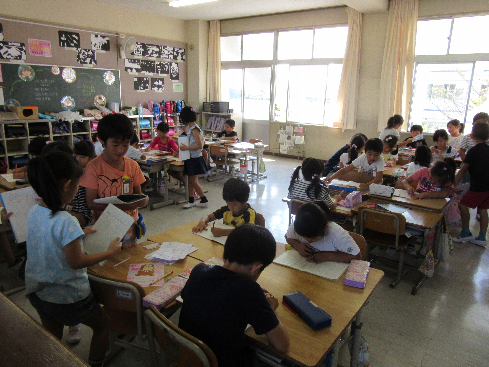 7月9日(月)4時間目は国語の授業でした。「ミリーのすてきなぼうし」を読んで、読書クイズを考えました。