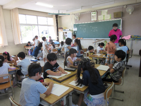5月22日(火)4時間目は図工の授業でした。「絵の具やクレパスを使って、思い出の絵を描こう」ということで、運動会の思い出を絵に描きました。